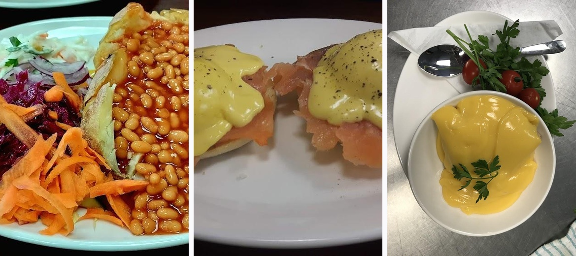 Definitely try the Full English Breakfast, scrambled eggs on toast, and their homemade desserts; they receive rave reviews.